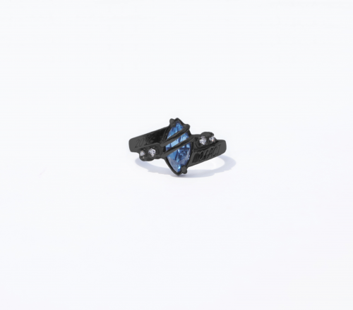 ANILLO HECHO DE UNA ALEACIÓN DE METALES NO PRECIOSOS CON UN PROCESO DE CARBONIZACIÓN TIPO DIAMANTE QUE LE OTORGA UNA TONALIDAD NEGRO MATE.