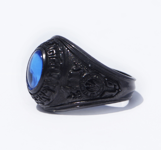 ANILLO HECHO DE UNA ALEACIÓN DE METALES NO PRECIOSOS CON UN PROCESO DE CARBONIZACIÓN TIPO DIAMANTE QUE LE OTORGA UNA TONALIDAD NEGRO MATE.