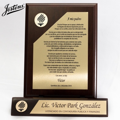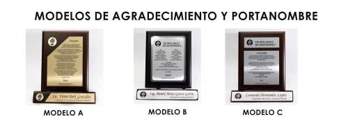 AGRADECIMIENTO Y PORTANOMBRE EN MODELOS A,B,C EN COLOR DE MADERA NEGRA O CAFÉ Y PLACA DORADA O PLATEADA.